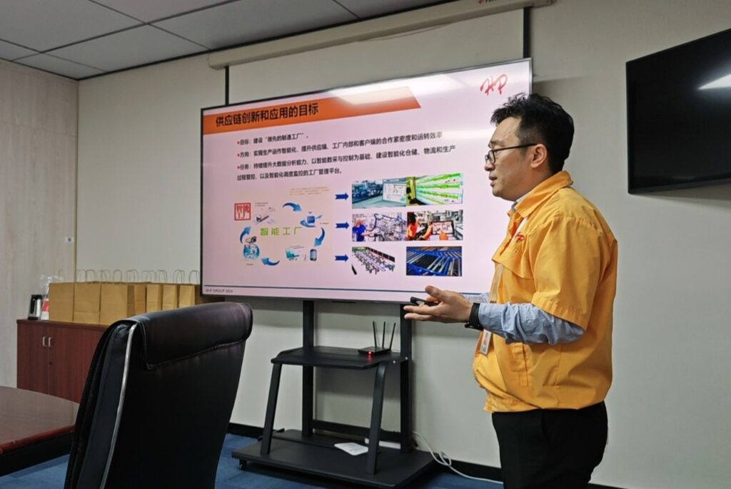 随后,由赫比的李经理做供应链创新与应用经验分享,围绕供应链创新与应用的目标,深入介绍赫比的供应链信息管理系统,包括EDI、MES、SAP、WMS、Ariba等模块的应用。这些模块提升了生产运作数据完整度和供应商管理能力,实现了降本增效,进一步提升了赫比整体运营效益。