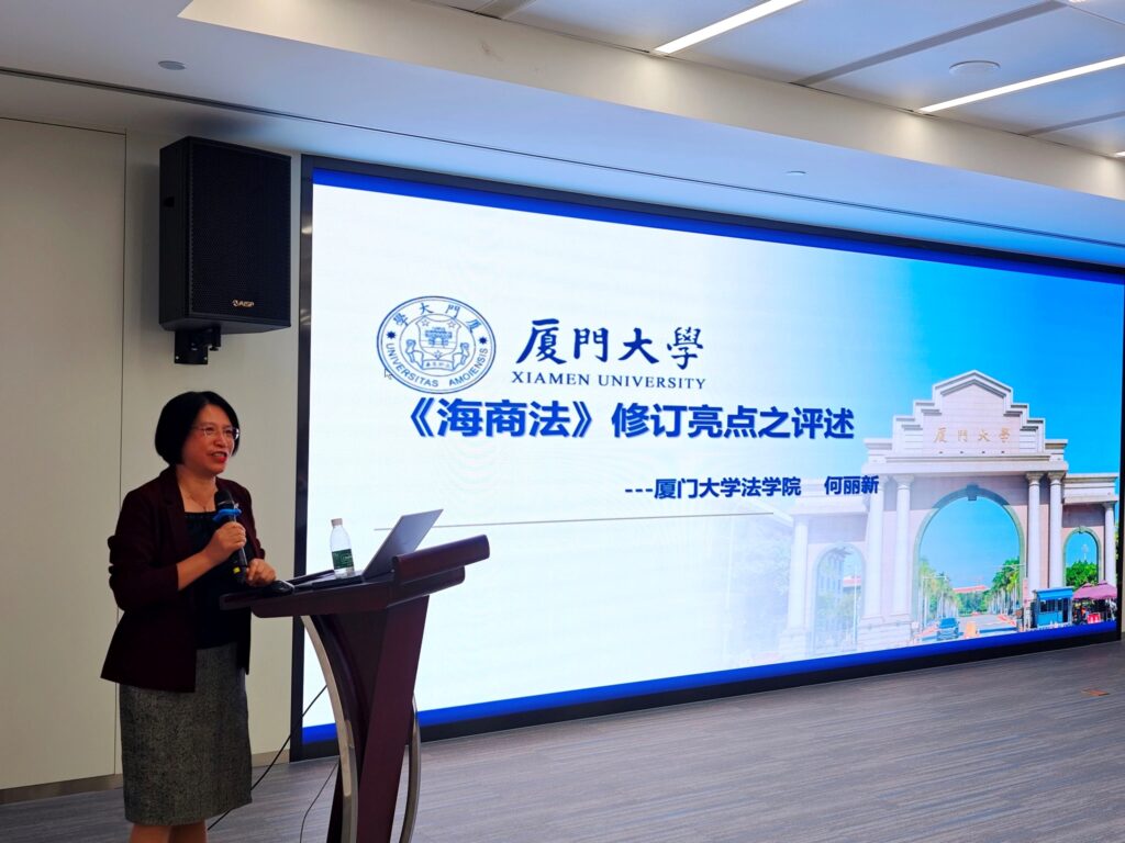 厦门大学法学院党委书记、博士生导师何丽新教授作为新《海商法》修订的重要参与专家,系统解读了修订亮点。她从公平性、现代化、国际统一性、本土化适应等维度,阐述了新法在电子运输单证、港口经营人地位、船舶油污责任等方面的重大突破,指出中国海商法正从“移植借鉴”走向“自主创新”,展现出国家海洋战略与法治软实力的提升。