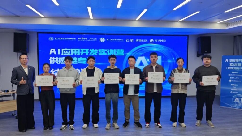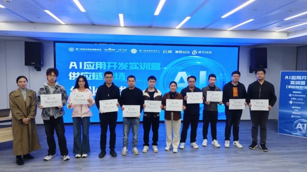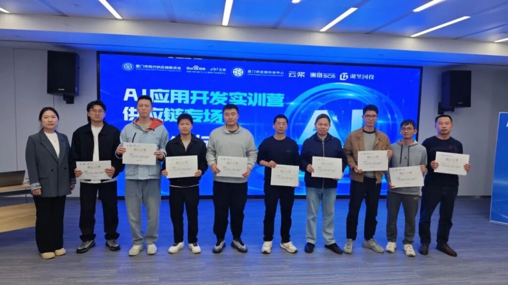 为响应会员单位在数字化转型浪潮中对AI技术应用的迫切需求,切实助力企业突破技术瓶颈、提升核心竞争力,2025年12月20日至21日,由厦门市现代供应链联合会联合百度飞桨(厦门)人工智能产业赋能中心、厦门供应链科创中心共同主办,湖里区国有资产投资集团、云桨人工智能、衡链联合协办的“AI 应用开发”(供应链专场)专项培训班在海上世界D座3楼会议厅成功举办。来自联合会会员单位的数十位企业学员齐聚一堂,沉浸式参与为期两天的专业培训,共探AI技术与供应链业务的深度融合之道。